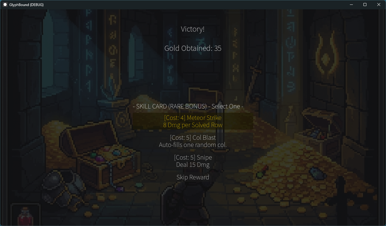 GlyphBoundは 、あなたの知恵こそが最強の武器となるターン制パズルRPGです。謎めいたダンジョンに潜り込み、独自の グリフマッチング戦闘システムでモンスターと戦い、虚空の秘密を解き明かしましょう。